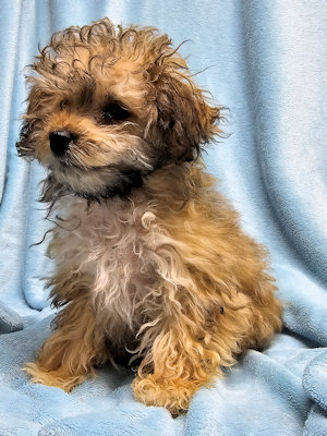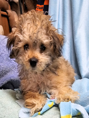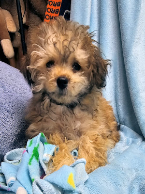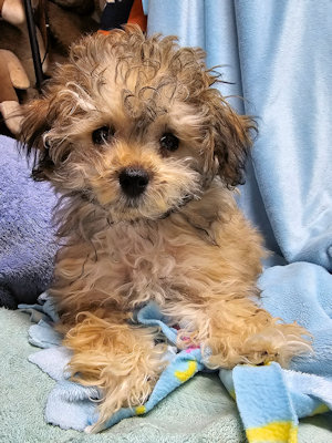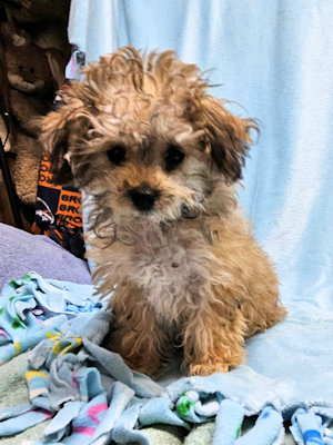I am a little girl, weighing 3 1/2 lbs at 16 weeks old. I am a happy bouncy puppy.